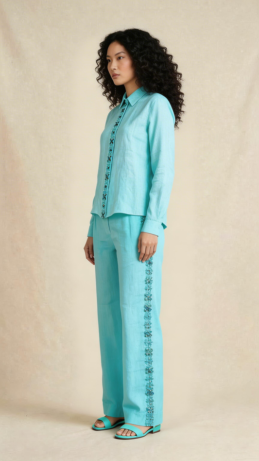 Aqua Ombre Baroque Shirt & Palazzo Set
