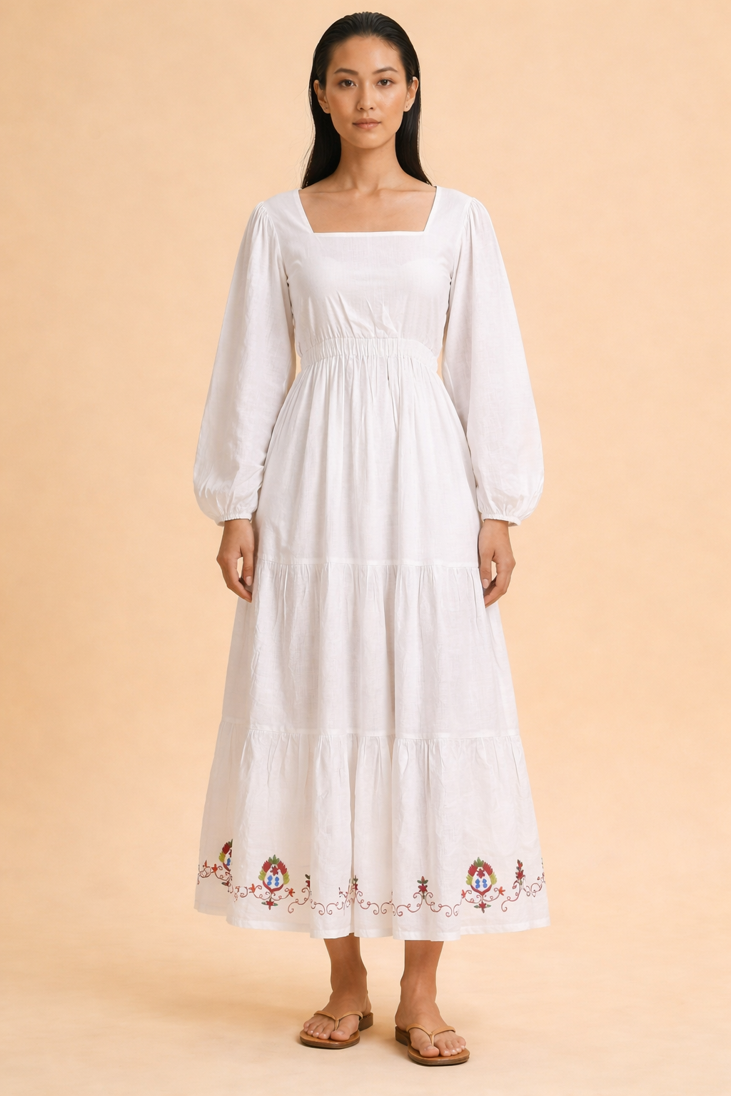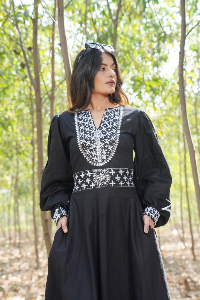 Black Embellished Cotton Linen Dress