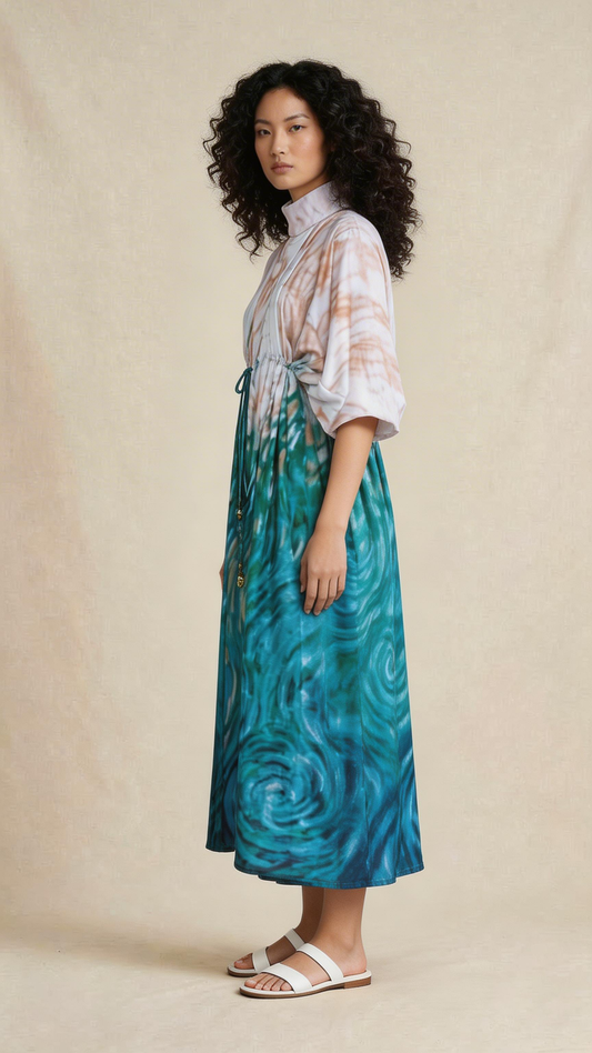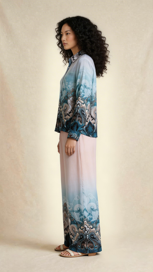 Aqua Ombre Baroque Shirt & Palazzo Set