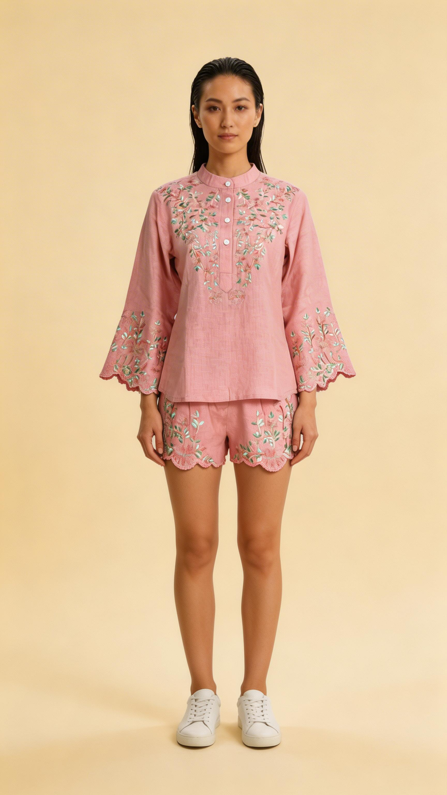 Azure Bloom Embroidered Linen Co-ord Set