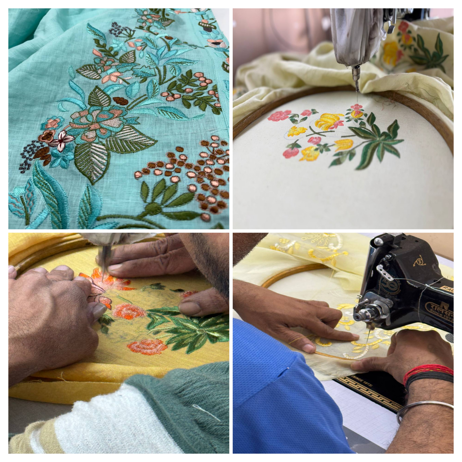 - Aari Embroidery โ Delicate needlework creating intricate floral and paisley patterns.